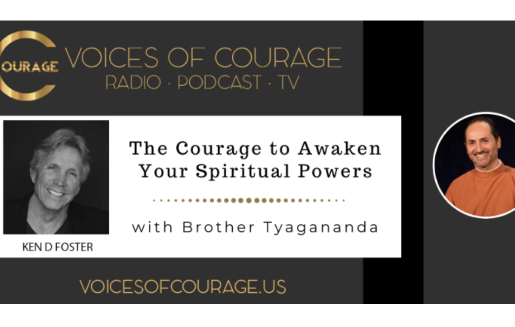 In this episode of his Voices of Courage podcast, Ken D. Foster and Brother Tyagananda discuss calming the mind, reawakening our spiritual powers, and cultivating a personal relationship with the Divine.